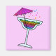 A brightly coloured margarita glass filled with a wavy rainbow of tequila cocktail fun, bubbling stars and topped with a hot pink, magenta cocktail umbrella. Perfect for any party or happy hour celebration, Bachelor or Bachelorette Parties or any cocktail party.