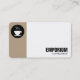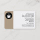 A business card template created with the catering industry in mind. A 1in colour margin to the left with a solid black circle with a coffee cup symbol/logo (which can also be replaced with your own logo) Company Name and business type arranged in the lower right. The reverse side of the card has the same layout along with a repeat of the logo. Opening hours and other contact details are aligned to the right. N.B This template doesn't have a contact name and job title since it's designed to function more like a mini flyer for a cafe or restaurant rather than for an individual or company rep. This simple but versatile template is ready to be customised with your details or can be additionally customised.