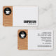 A business card template created with the catering industry in mind. A 1in colour margin to the left with a solid black circle with a coffee cup symbol/logo (which can also be replaced with your own logo) Company Name and business type arranged in the lower right. The reverse side of the card has the same layout along with a repeat of the logo. Opening hours and other contact details are aligned to the right. N.B This template doesn't have a contact name and job title since it's designed to function more like a mini flyer for a cafe or restaurant rather than for an individual or company rep. This simple but versatile template is ready to be customised with your details or can be additionally customised.