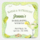 Celebrate your bachelorette party or bachelorette weekend with margaritas. This fun sticker features a watercolor image of a classic margarita with lime wedges scattered around. The frame contains the information against a green watercolor speckle pattern background. A pair of wedding rings brings the point of the celebration home. A sticker to make a bachelorette party or a hen night one to remember. Available with matching products.