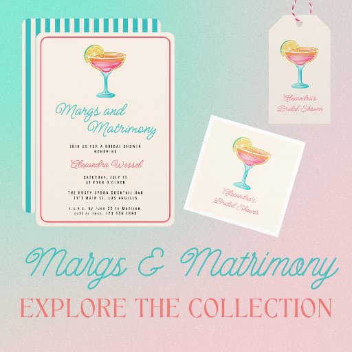Margs and Matrimony Retro Cocktail Bridal Shower Napkin