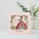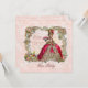 Marie in hot pink dress with pink roses and French script writing. She is framed with a fancy ornate gold and blue and the flowers. The background is soft pink and white. Perfect for bridal showers, birthday party, tea parties and more. You may change the wording to suit your needs. I f you need help contact Greer at greerdesign@aol.com
