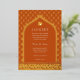Invite your loved ones to celebrate the rhythm of your love story with this elegant Sangeet invitation. Featuring a beautiful gold foil marigold pattern, a symbol of prosperity in Indian culture, these invitations are customisable with all your Sangeet details. Choose from six vibrant colours (red, orange, blue, purple, pink, charcoal) to match your décor and set the festive tone for your special night.