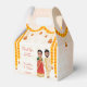 Marigold garlands bells with Tamil Telugu wedding personalised favour gift boxes. Very cute looking favour box to give a table setting some flair.