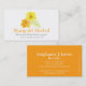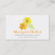 Modern simple marigold herbalist business card. Designed for marigold and herbal related business owners and marigold growers and specialists. Personalise your card with your details. Featuring a uniquely painted marigold botanical art by artist Sarah Trett.