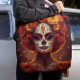 Carry culture and beauty with you wherever you go with the Marigold Spirit tote bag. This striking design features a stunning Día de los Muertos sugar skull woman crowned in vivid orange marigolds, symbolising remembrance, life, and honour. Perfect for festivals, daily errands, or making an artistic statement, this durable and spacious tote combines practicality with bold, spiritual style.