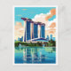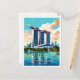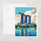 Marina Bay Sands Art vintage travel illustration Postcard