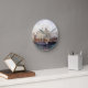 The clock did not take as long to arrive as I thought it might and was extremely well packaged. I didn't do the measurements so I didn't realize it is a little smaller than the average clock but that does not matter (just make sure you check if that's important to you).It is really nifty! It seems very solid and well made not flimsy at all. It has been going well and has kept good time in its few weeks on my wall. Nice product. Gets noticed too! Nicer in real life than the picture but true to the picture