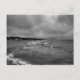 A postcard with a black and white view of th sea and the beach of Sabaudia in a cloudy day at the end of the winter