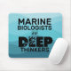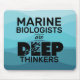 A blue wave background mouse pad. Text says: Marine Biologists Are Deep Thinkers