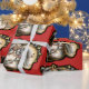 Growling, teeth bared, badboy, himself, Chesty, the bulldog, now on festive paper!!!