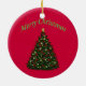 This ornament is decorated on one side with a toy Marine and the words "Merry Christmas" and on the other with a Christmas tree and the words "Merry Christmas."