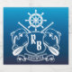 Create your very own nautical Coat of Arms, Emblem, Insignia or Family Crest with this ocean-themed escutcheon or shield design. A classic shield is flanked by a pair of dolphins, ship’s wheel or helm and pair of crossed oars. Banner holds your custom names / wedding date / birth date / slogan or battle cry. The shield has space for your monogram initials. Replace the sample text with your own for a personalised gift. This gender-neutral design works for couples, individuals and families. Makes a wonderful gift for Birthday, house warming, Mediaeval or Fantasy-themed parties, summer events, Beach or Cruise Wedding, Anniversary, Save the Ocean Day, Retirement, Promotion, Father’s Day, Bachelor Party, Wedding Shower, Graduation and other special occasions. A great gift for anyone who enjoys nautical themes.