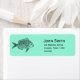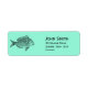 Special trendy personalised address labels with a design of a vintage fish illustration in black against a classy stylish aqua customisable color. The text is fully customisable to include your own personal details.