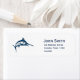 Special trendy nautical marine personalised address labels with a design of a vintage swordfish illustration in navy blue against a classy stylish clean white customisable colour. The text is fully customisable to include your own personal details.