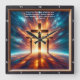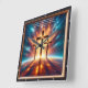 clock acts as a daily reminder of the comfort and power of faith. Personalise this timepiece to reflect your unique style using our Design Tool. Adjust the numeral colours and hand styles to create a piece that speaks to your heart. Whether for your home or as a meaningful gift, this clock blends timekeeping with a powerful spiritual message. Three towering wooden crosses with Jesus emerge against a mesmerising fusion of sunset and space.