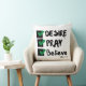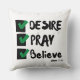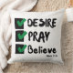 This throw pillow design is based on the Mark 11:24 bible scripture displaying the word "Desire, Pray, Believe" a paint brush stlye print font with black letters and green and black checklist plus bible citation in this KJV faith based quote theme. This pillow is made with high quality simplex knit fabric our pillows are soft and wrinkle-free the cover is machine washable.
