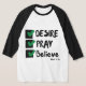 This 3/4 sleeve t-shirt design is based on the Mark 11:24 bible scripture displaying the word "Desire, Pray, Believe" a paint brush stlye print font with black letters and green and black checklist plus bible citation in this KJV faith based quote theme. This shirt has a white or ash body with matching sleeves and collar with double-needle stitched bottom & sleeve hems for long lasting durability.