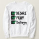 This sweatshirt design is based on the Mark 11:24 bible scripture displaying the word "Desire, Pray, Believe" a paint brush stlye print font with black letters and green and black checklist plus bible citation in this KJV faith based quote theme. This sweatshirt is made from 100% cotton this shirt is both plush and durable which make a great combination has smaller matching image on the back.