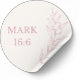 A minimalist Christian sticker featuring Mark 16:6 – “He is not here; He has risen.”