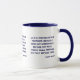 This two-tone mug showcases the "Mark 1:2" bible quote scripture KJV in a bold baron print font with navy blue letters and bible citation in this bible quote theme from the King James bible. The rim & handle are glazed in matching colours available in 11-ounce or 15-ounce sizes microwave and dishwasher safe ceramic construction.