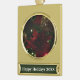 Maroon and Gold Christmas Tree Holiday Photo Gold Plated Banner Ornament