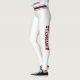Cheerleader's white leggings, with graphics of a maroon, grey and white band, around the top and maroon graphic text, on the right leg reading Cheer leader, with a football. The left leg has maroon bold custom text, ready to personalise with cheerleader's name or school.