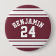 Maroon and White Jersey Stripes Custom Name Number 10 Cm Round Badge
