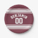Maroon and White Jersey Stripes Custom Name Number Paper Plate