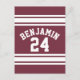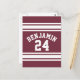 Maroon and White Jersey Stripes Custom Name Number Postcard