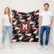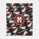 This basketball themed fleece blanket features a mirrored pattern of realistic basketballs with alternating recolored maroon and white panels and the sporty font text "I love basketball" in white that stretches between the angled rows of basketballs - athlete name and monogram can be personalised on the large overlying circle pendant - background is customisable black - easily delete the "I love basketball" text lines, if desired, or replace the monogram with the player's varsity letter or jersey number - by katz_d_zynes