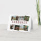 Look at your graduate from an entirely different angle! Invitation design has space for eight square photos on the front, each set at a rakish angle, then another large one inside. Template uses vertical photos cropped down to squares. Front shows the word GRADUATE with a line underneath for their name. Inside includes space for one more photo and text to share the event details, then a section on the back to share future plans. Available in school colours of black, red, orange, green, blue, purple, maroon, and burnt orange.