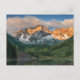 Postcard of the sun rising on Maroon Bells peaks near Aspen, CO.