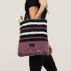 Elegant wide maroon, black and white stripes cover the top of this Tote Bag, while the bottom is maroon, with a small butterfly silhouette and space for your name. Lovely, and perfect for work, school or shopping.