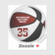 This custom basketball sticker features the realistic image of a basketball that has alternating maroon, white and black recolored panels, upon which you can personalise the athlete's name and jersey number plus team name - by katz_d_zynes