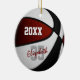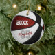 This basketball ornament features the realistic image of a basketball that has alternating maroon, white and black recolored panels - personalise the front and back of ornament with year and player's name in an "autograph" style font overlying the athlete's jersey number - by katz_d_zynes