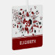 This cool girl's soccer ornament features an "explosion" of varied size soccer balls that have maroon, black and white panels, and grey and maroon star shapes, upon which you can personalise her jersey number - the maroon star has a tiny pattern of white polka dots - customise the athlete's name on the front & commemorative year on the back on a maroon colour strip at the bottom edge of the ornament - katz_d_zynes