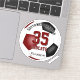 This team colours soccer sticker for boys or girls features the realistic image of a soccer ball that has maroon, black and white panels - customise the player's name, jersey number, team name and mascot name - by katz_d_zynes