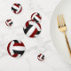 This volleyball birthday party confetti for girls or boys features the realistic image of a volleyball that has maroon, black and white panels on the front and back of each piece - by katz_d_zynes