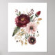 Maroon Burgundy Pink Watercolor Floral Botanical Poster