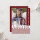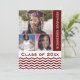 Maroon burgundy and white graduation announcement is fully customisable for your high school or college ceremony or open house. White chevron zig-zag background pattern with block text and three images.
