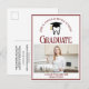 This chic custom maroon dental school graduate announcement postcard features a tooth wearing a graduation cap for a class of 2025 dentistry graduate above your student photo. Customise with your graduating year under photograph for great personalised dental hygienist, orthodontist, or dentist graduation postcards.