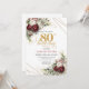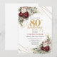 Maroon Floral Greenery Gold 80th Birthday Invitation