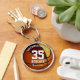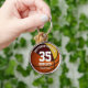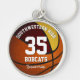 This sporty basketball themed keychain for boys or girls features a simple basketball graphic with two recolored panels--one maroon and one gold--and easily customizable school name & mascot name and player name & jersey number - by katz_d_zynes