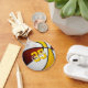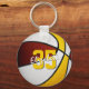This easy-to-personalise basketball themed keychain features the realistic image of a basketball that has alternating maroon, white and gold recolored panels on the front and a simple maroon basketball shape on the back - easily personalise with player name & jersey number on the front and school or club name & mascot name on the back - by katz_d_zynes