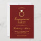 Amaze your guests with this elegant engagement party invitation featuring a beautiful gold diamond ring against a dark red background. Simply add your event details on this easy-to-use template to make it a one-of-a-kind invitation. Flip the card over to reveal a beautiful faux gold glitter texture on the back of the card. This invitation is fully customisable. All texts are editable and background colour can be easily changed to what best fits you.