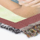 A quality printed throw has its advantages. This is a much finer weave throw than its loopier cousins, and though lighter, it is worth the investment for custom room accessorizing. The back is much prettier than the typical brown, and the fringe on the long sides very vivid, the selvage nicely done. Before photographing, I washed the throw in cold water, delicate, with a thicker woven throw the same size. On tumble dry low, this throw was dry in half the time as the other. This is a very practical quality if you use throws for furniture covers or to wrap up in frequently. The sleekness of the fabric makes it a great layer for accenting or protecting without the feeling of sitting on too much stuff. Perfect for napping or when you feel a light chill coming on. The color printing is beautiful and on this fabric, matched the design and color of my Photoshop image. This is an advantage for blending room fabrics and colors. The fringe on the short sides prints the colors from the design image and therefore varies from the side fringe. I streaked a white fractal line through the plaid pattern to give the illusion of weaving. This printed as crisp as an illusory thread, and put some white in the short side fringe, showing another advantage of print vs loomed- for artistic purposes, line lines, detail, and color integrity can be planned and preserved. My loomed throws have color limitations and more of a needlepoint texture. Print throws reproduce an exact image. The throw felt a little stiff straight out of the package, but this went away in the first delicate wash. Of course I searched the wash water for ink or bleeding and there was none.