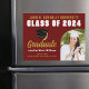 This modern maroon and gold custom senior graduate photo magnet features your graduation photograph next to classy white typography of your college name for the class of 2025. Customise with your graduating year under the chic black handwritten script and black grad cap for a great grad announcement magnetic card.