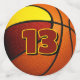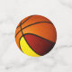The front and back of each piece of this basketball birthday party confetti features the realistic image of a basketball that has two recolored panels, one maroon and one gold - customise with the child's age on one confetti piece, or delete - by katz_d_zynes