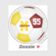 This team colours soccer sticker for girls or boys features a traditional style soccer ball with maroon, gold and white panels - customise the player's name, monogram and jersey number - by katz_d_zynes